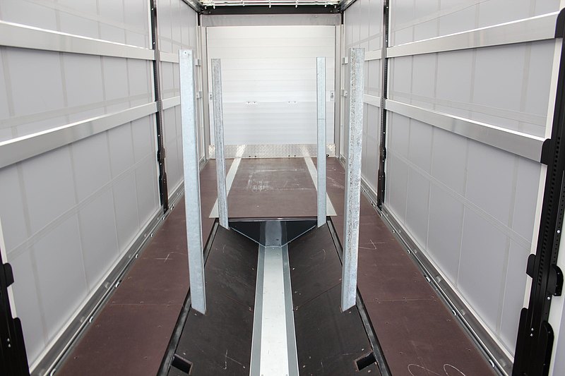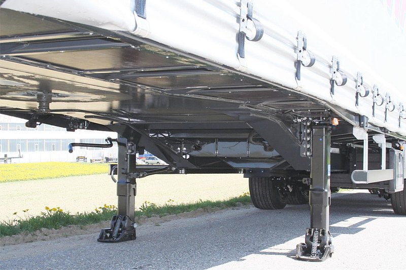 a2 pevné predné hliníkové rohové stĺpiky do výšky strechy, umiestnenej bočne vpredu, 3 stredné stĺpiky v smere jazdy vľavo, posuvné po celej dĺžke ložnej plochy, prevedenie stĺpikov pre Hubdach (zdvih strechy), 3 stredné stĺpiky v smere jazdy vpravo, posuvné po celej dĺžke ložnej plochy, prevedenie stĺpikov pre Hubdach (zdvih strechy). Na každej strane navyše 3 dodatočné zámky pre stĺpiky. 4 rady úchytov pre plachtové laty, prvý rad úplne dole cca 460 mm, s rozostupmi cca 160/600/600 mm, 4 rady hliníkových profilovaných plachtových dosiek 100/25 mm. Obojstranný hydraulický Hubdach s manuálnym ovládaním so zdvihom 400 mm, pre nakládku a vykládku zo strany (portálové dvere musia zostať otvorené). Strešná posuvná konštrukcia VERSUS s umelohmotným strmeňom, dopredu posuvná s prizdvihovacou automatikou = zhrnutá zostáva v nakladacím priestore, so zvislými a vodorovnými vodiacimi profilmi = bez vystupujúcich hrán. Po oboch stranách špeciálny hliníkový vodiaci profil pre pojazd plachty a stĺpikov. Konštrukčná výška 195 mm. Ovládacia tyč pre posuvnú strechu (držiak na bočnej ochrane z vnútornej strany).