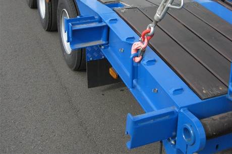 - Výsuvné a odnímateľné varovné tabule vpredu a vzadu vrátane pozičných a obrysových svetiel, na prepravu nadmerne širokých nákladov