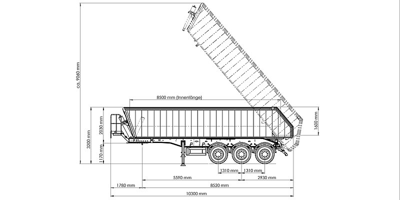 Vzadu pevná výsypka (podlaha predĺžená o cca 600 mm).