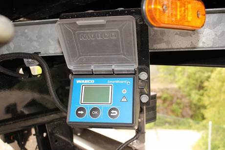 - VOLITEĽNE: Smartboard - zobrazovacia a ovládacia jednotka od fi Wabco umiestnená na vozidle = čítanie údajov o prevádzke vozidla na displeji jednotky (stav km, zaťaženie náprav, atď.)