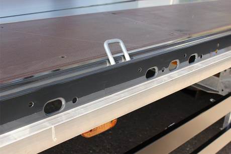 - Dierovaný vonkajší rám (začínajúce cca 3.000 mm od prednej steny) s rozstupom dier cca 100 mm, pozdĺžne diery 40/25 mm podľa DIN EN 12640 a 23 párov zapustených kotviacich 2,5 t strmeňov / ok, dodatočne 5 párov 4 t kotevných strmeňov vo vonkajším rámu v oblasti prehĺbeného lôžka