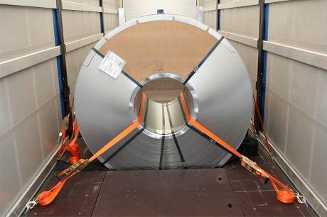 - Zosilnená konštrukcia rámu na prepravu 27 t zvitkov v ťažisku na min. nakladacie dĺžke 2.000 mm