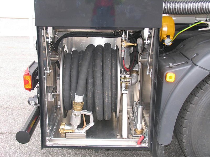 - Hadicový bubon v prístrojovej skrini alebo medzi kabínou a nádrží